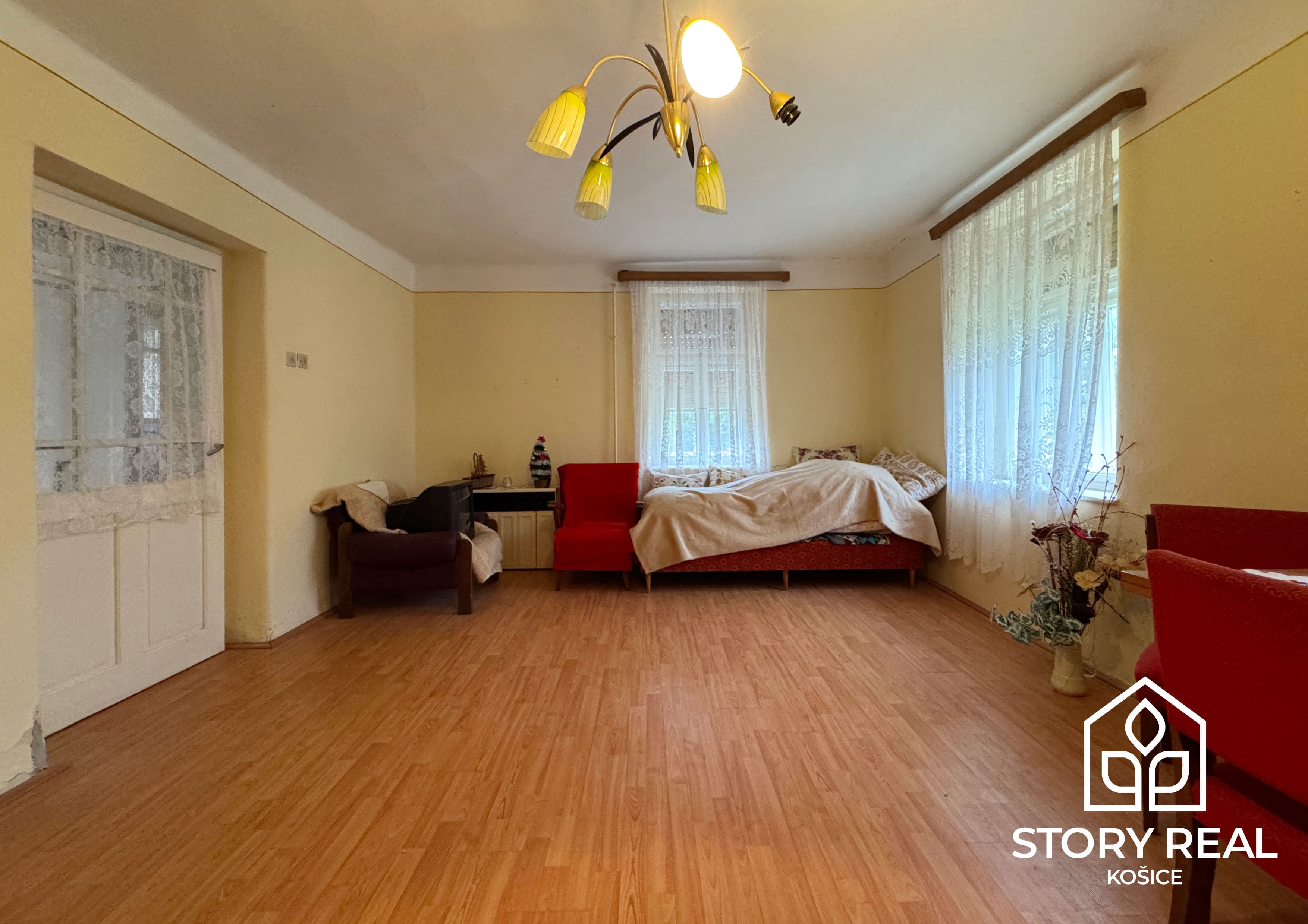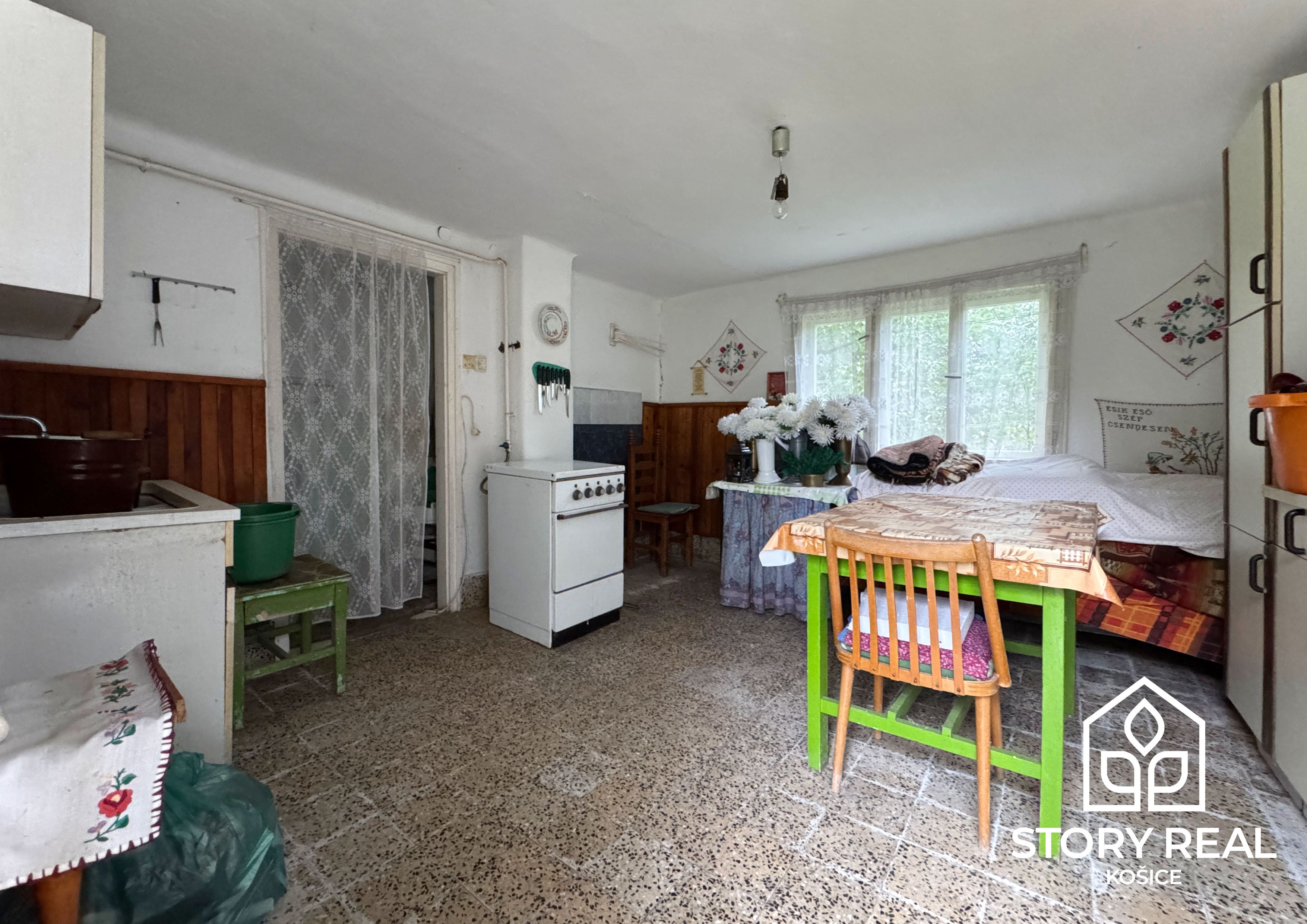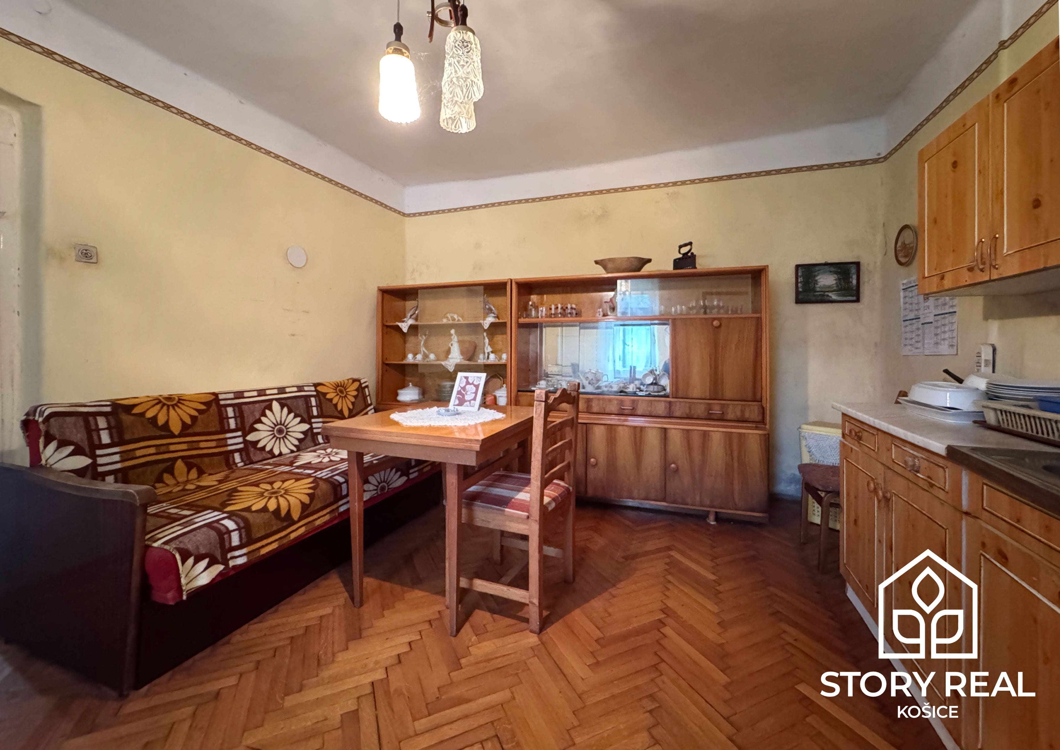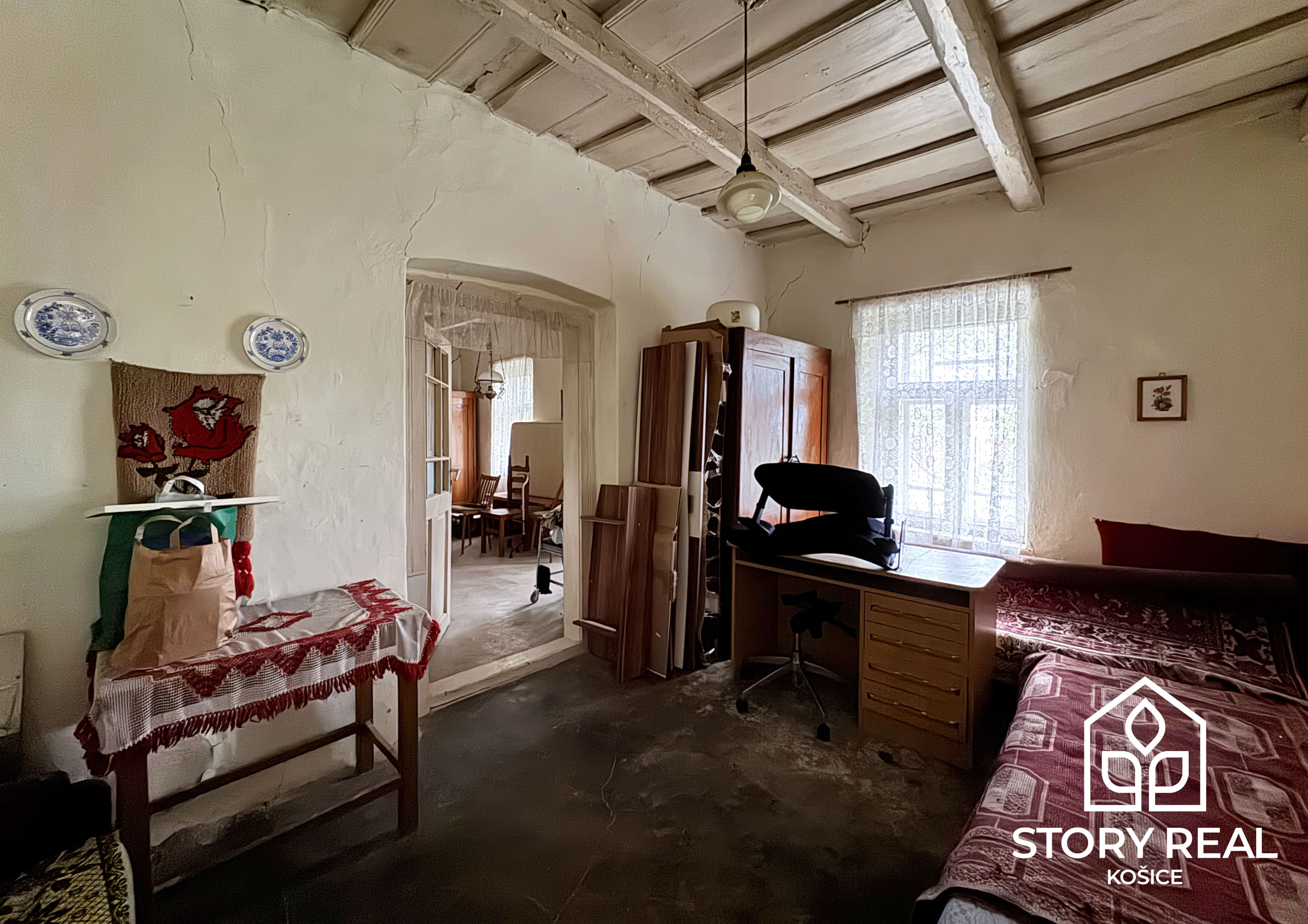 Prvý ponúkaný rodinný dom o rozlohe 90 m2 sa delí na dve časti, obytnú a úžitkovú. V obytnej, prednej časti domu sa nachádzajú 2 izby, chodba, kuchyňa, špajza a kúpeľňa. V tejto časti domu sú zavedené všetky IS, elektrina, voda, plyn a kanalizácia. Vykurovanie nehnuteľnosti je na plyn, v každej miestnosti sú osadené plynové gamatky. Okrem toho sa v dome nachádza aj krásna veľká kachľová pec, ktorá dotvára pravú vidiecku atmosféru a môže slúžiť aj ako doplnkový zdroj tepla v chladnejších mesiacoch. V miestnostiach je položená plávajúca podlaha, drevené parkety v dobrom stave a keramická dlažba. Dvere a okná sú pôvodné, drevené. Strecha a odkvapový systém prešli pred 8 rokmi rekonštrukciou.